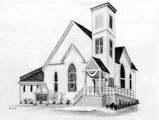 Rockport Trinity United Methodist Church, by Ryan Reid, Grade 10, South Spencer High School Rockport - Organized January 1, 1822. Cornerstone was laid April 10, 1868, the first service was May 2, 1869. Construction was by Hosea and Arnold Merithew for $16,000. A yoke of oxen pulled the church bell from the old 1840 church house to the new church.