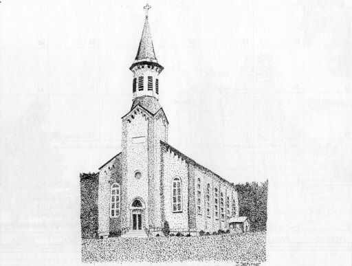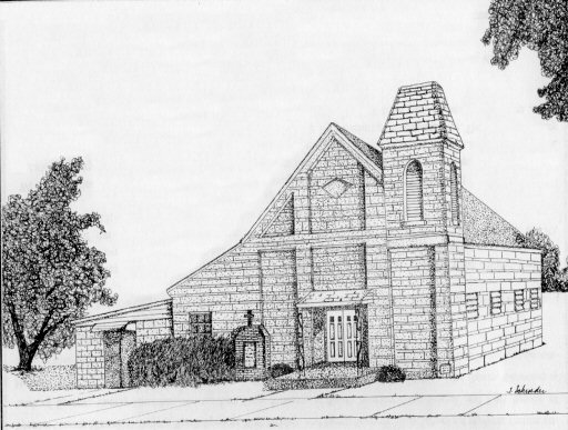 Saint Boniface Catholic Church, by Jill Seckinger, Grade 12, Heritage Hills High School Fulda - Founded by Father Joseph Kundek in 1847. Constructed in 1865-66, and dedicated June 5, 1866. Limestone was quarried west of Fulda for windows and steps, and a local brick factory and saw mill was used to produce the beautiful church. Listed on the National Historic Registry. |