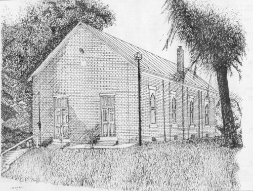 Smithfield Baptist Church, by Teresa Schroeder, Teacher, South Spencer High School Rockport - In the time of Civil War, 1865, a branch of the (Black) Rock Spring Baptist, (Daviess County, Ky.) crossed the Ohio River. Under Pastor Elder Dabney Jewel, Smithfield Baptist was set up in 1865. In 1869, a little frame church was built for $500. The current structure was built in 1875 for $2,400, and since has been expanded.