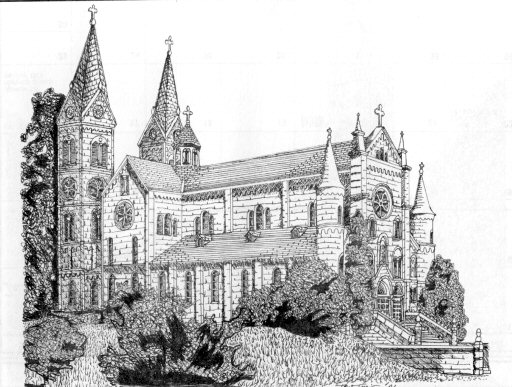 Saint Meinrad Archabbey Church, by Tony Irwin, Grade 12, South Spencer High School Saint Meinrad - Founded in 1853 and becoming the first Benedictine Monastery west of the Allegheny Mountains. A nearby quarry furnished limestone (1872-1874) for the Monistery buildings. Current church completed in 1904.