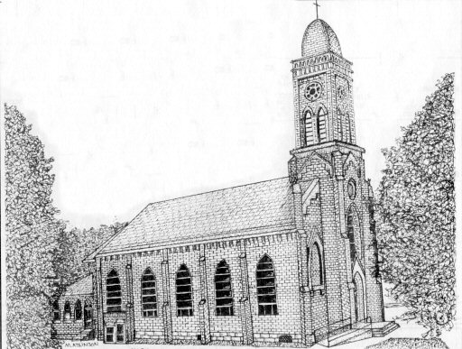 Saint Bernard's Catholic Church, by Mariah Atkinson, Grade 11, South Spencer High School Rockport - Founded in 1848. June, 1876 the new brick building was dedicated replacing the previous church structure of 26 years. January 1, 1917, a destructive fire consumed the interior. The old walls were used as the church was rebuilt and rededicated in 1918.