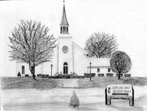 Santa Claus United Methodist Church, by Brittany Detzer, Grade 12, Heritage Hills High School Santa Claus - Started with prayer meetings in 1849. Shortly after a camp ground began operating with church until 1917. An 1859 frame church replaced a log church and current church foundation started in 1873. Dedicated in 1874 and basement added in 1899.